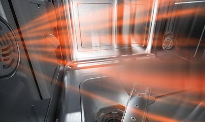 华帝G6干态洗碗机在喷淋系统的设计上做了升级调整。采用底部喷淋臂+顶部隐藏喷淋臂,搭配洗涤电机,能瞬间激发强劲动力,形成高压双卷水流,360度无死角进行上下环绕喷淋,保证餐具洁净无污渍。