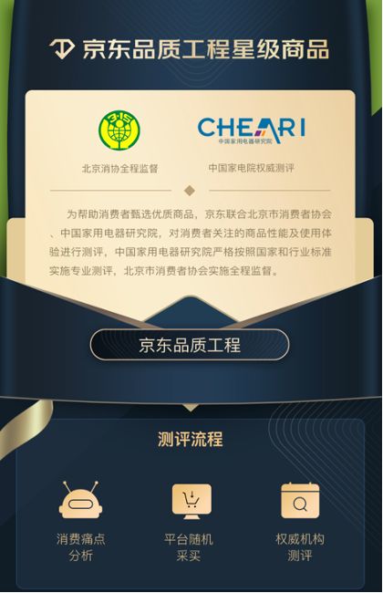 在发布标准的同时,为了促进市场健康有序的发展,京东电器还公布了“品质推优”的运营逻辑:旨在借鉴消费者协会的比较试验经验,从提升客户体验的角度出发,联合权威质检机构采用“选定品类、发布推优标准、权威实测、标签透传”的模式,为消费者甄选优质商品的同时,在零售前台匹配丰富的页面资源,引导生产端提升产品质量,从而促进行业的健康发展。
