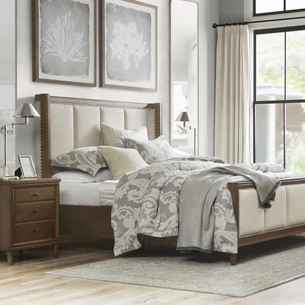 其中,Burlington床的贴心设计尤其令人称道。床高屏以环绕姿态微微收拢于床头,方便倚靠的同时也赋予了整床颇具标志性的优雅气质。核桃木色和浅沙布色的搭配,好似为其加上了一层淡淡的复古滤镜,家的气氛亦变得安然起来。