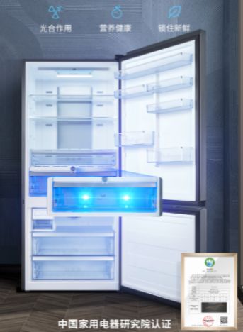 Bluelight蓝光养鲜,唤醒食材鲜活养分,模拟植物在自然界中的环境,借助蓝光进行光合作用,保证食物的新鲜和营养。