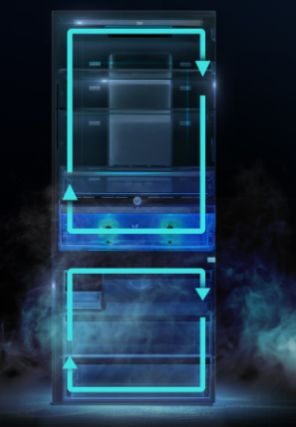 Beko倍科原装进口大宽门冰箱CN17220IXR冷藏和冷冻室各有一套风扇和蒸发器,可以实现真正的风冷双循环,制冷快速,冷冻冷藏不串味。