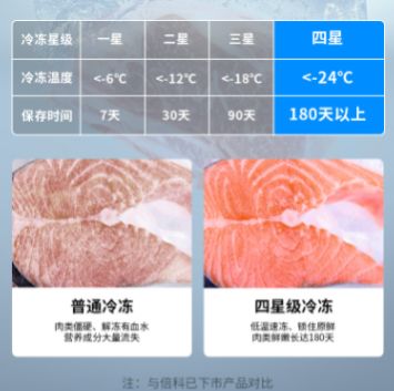冷冻室拥有四星级深冷速冻,-27℃冷冻,180天保湿锁鲜,锁住食材水分不流失,让你享尽舌尖原鲜滋味。