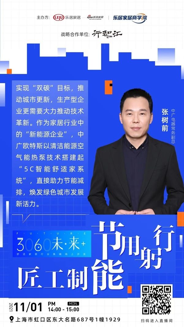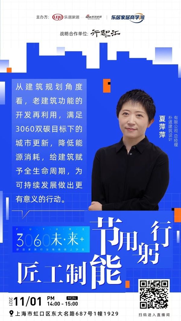 本期沙龙节目中,新浪家居邀请到行知汇创始人邵策、朴道建筑设计有限公司总经理夏萍萍、浙江中广电器股份有限公司常务副总张树前、威能中国销售总经理李林涛、等跨界嘉宾,与新浪家居华东区总经理张弛、新浪家居华东区主编廖梅君一同,探讨”低碳转型“路径、”能耗双控“策略与”城市更新“的愿景,助力舒适家居企业把握城市更新趋势,为更美好的人居生活助力。