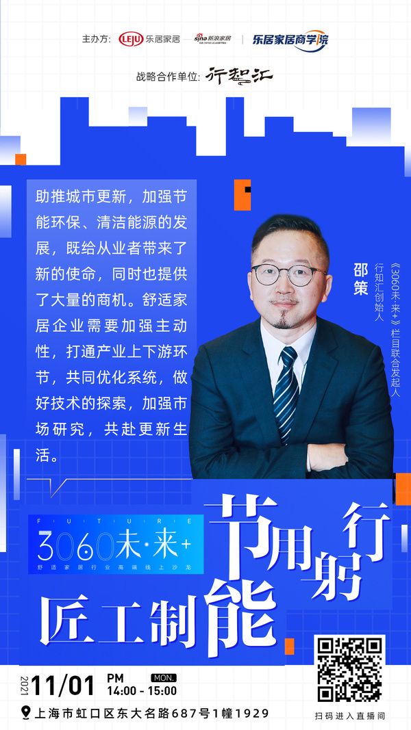 近日,由新浪家居、乐居商学院、行知汇共同策划的《3060未·来+》舒适家居行业高端系列沙龙第二期如期举办。本期栏目继首期主题“绿建先行,机变未来”,再度围绕“节能低碳,绿色发展“,探索城市更新的发展路径。