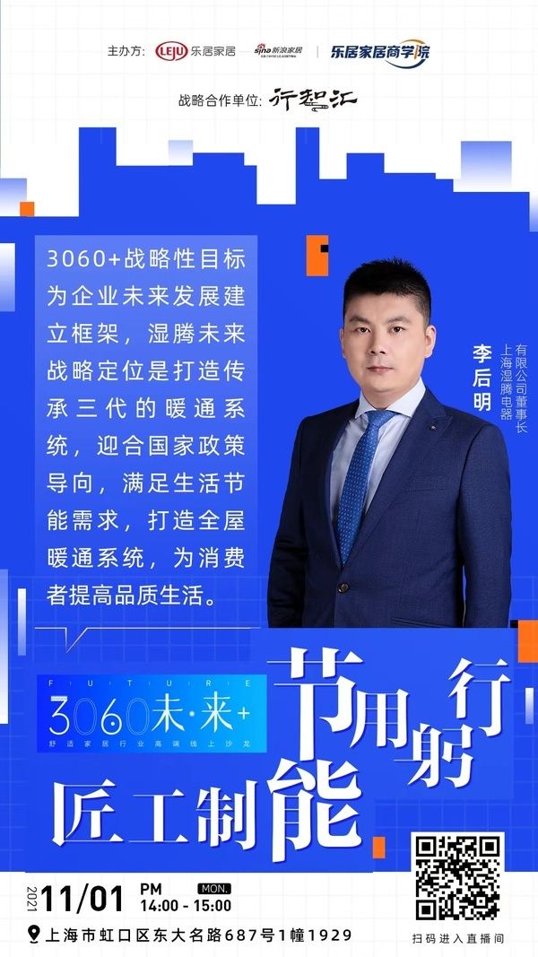 上海湿腾电器有限公司董事长李后明表示,3060+的战略性目标为企业未来发展构建了清晰的发展框架。湿腾通过整合“温、湿、氧、净、静“5大人居需求,创新五恒健康家舒适家居系统,消费者带来 “一站式”解决方案,真正节约能耗,高效联动,为消费者提高生活品质,构建舒适、节能、健康、环境友好的”舒适系统“,为城市更新,贡献企业力量。