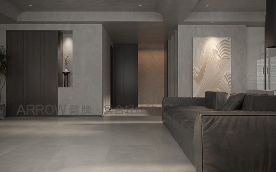 为了避免单调,箭牌复合轻纹砖还复合了多种自然纹理,低调却不失内涵,这样的轻纹理瓷砖铺贴在家居空间中会显得简洁素雅,没有对冲的强烈刺激,让空间多一些留白,减少杂乱感,家居空间布局更加协调,更有呼吸感。