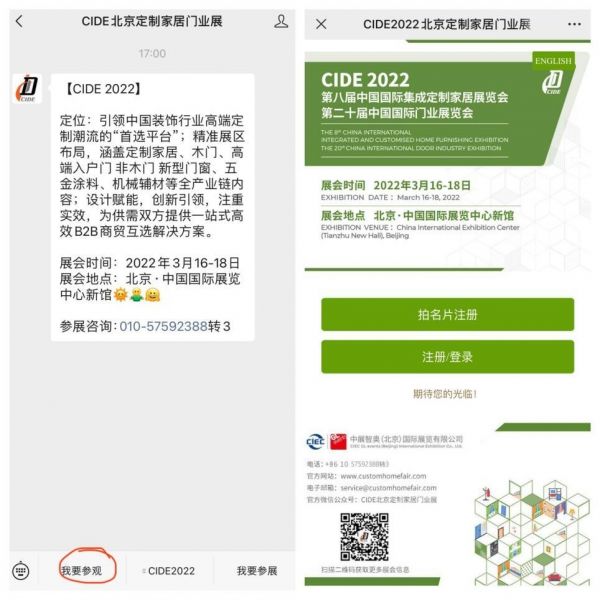 CIDE 2022 观众预登记正式上线!北京门业与定制展期待与您齐聚盛会!
