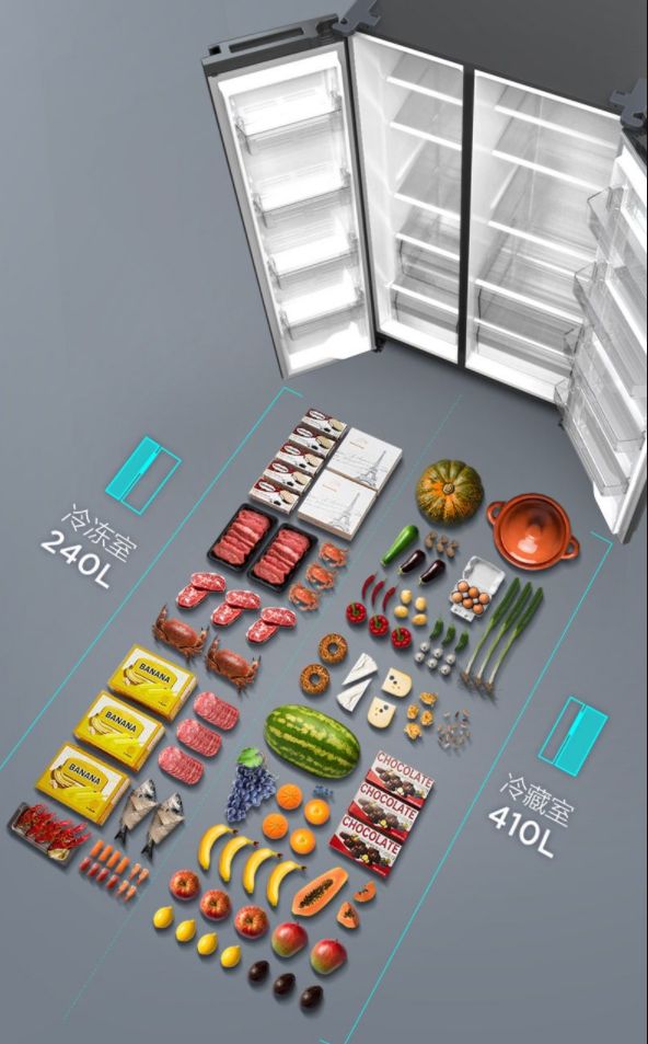 TCL 650升大容量养鲜冰箱R650T1-S拥有超市级的大容量,能够储存大量食材,满足全家膳食所需,搭配上AAT负氧离子养鲜技术,备好充分的食材,就可随心解锁新鲜美食,这种快乐可太香啦!
