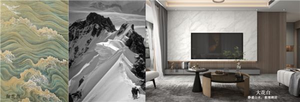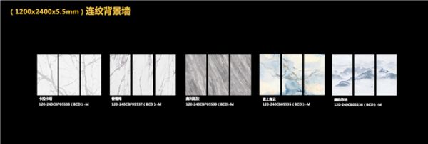 第三个系列是1200-2400mm的三连纹新背景墙产品,增加了超白坯体质感和哑光油画质感面风格设计,进一步完善和丰富了蒙娜丽莎瓷砖背景墙系列产品的品类。