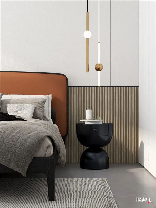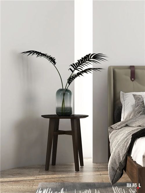 床头柜氛围的打造,有时一个盆栽、一张照片、或是一个小雕塑,就能营造空间的温馨、浪漫和档次。