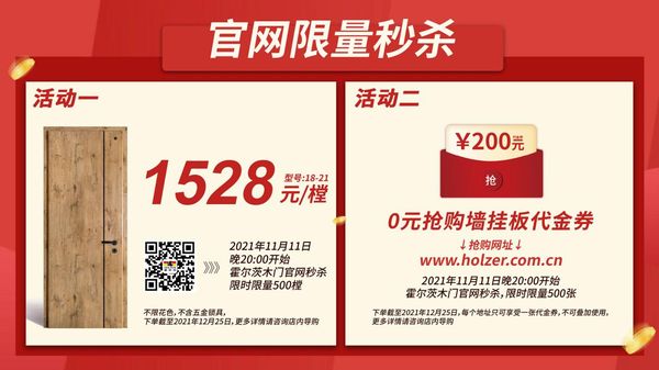 惠不可挡,霍尔茨木门11.11大放价!