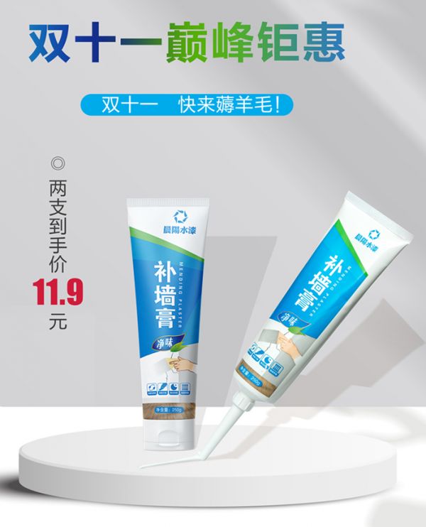 天猫晨阳水漆旗舰店双十一钜惠,两只补墙膏到手价11.9元!现在去淘宝/天猫搜索【晨阳水漆旗舰店】,手慢无!