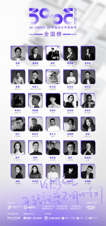 12月9日,2021广州设计周现场将举行30 UNDER 30 中国设计年度新秀(2021-2022)年度盛典,隆重颁发2021年度的“地区榜”、“全国榜”荣誉证书及奖杯,为脱颖而出的210位设计新秀荣耀加冕。