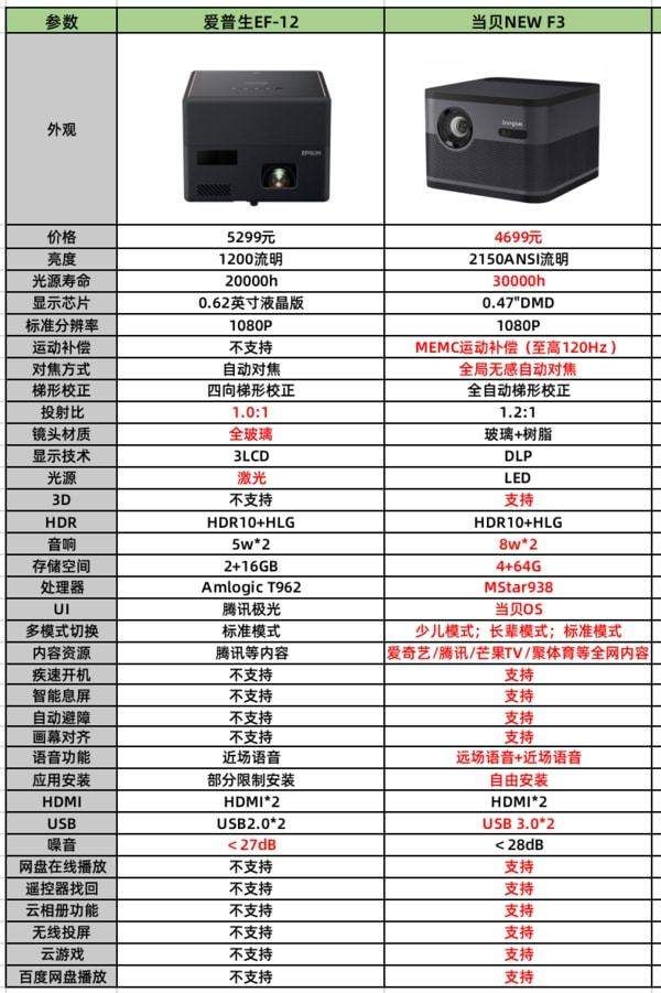 当贝NEW F3相对爱普生EF-12有哪些优势?画质好么?