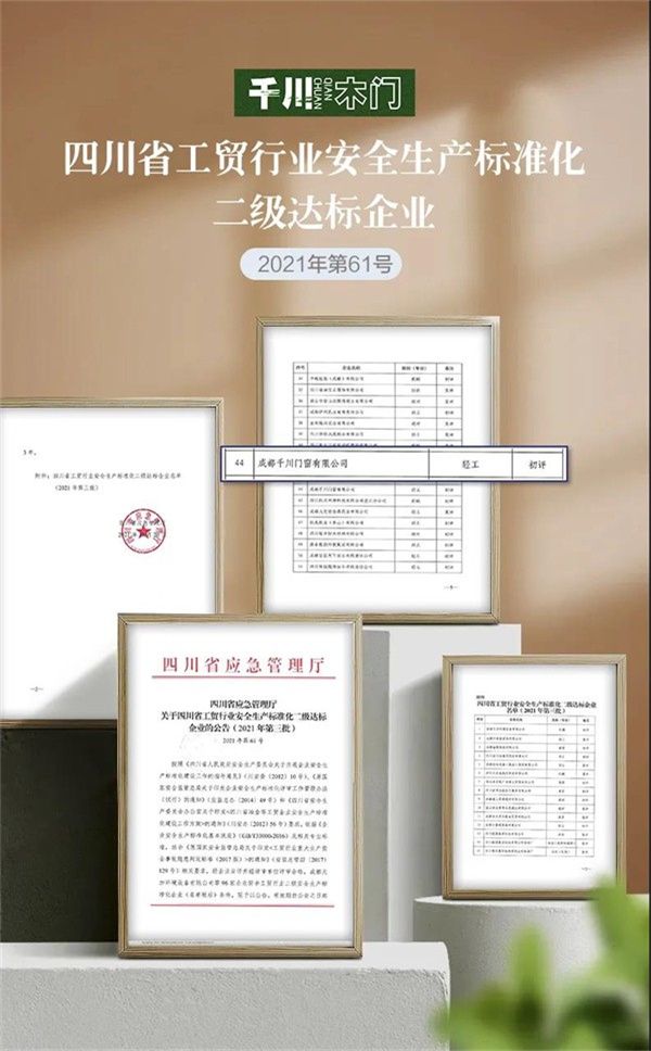 门窗快讯|千川木门获评“安全生产标准化二级企业”称号