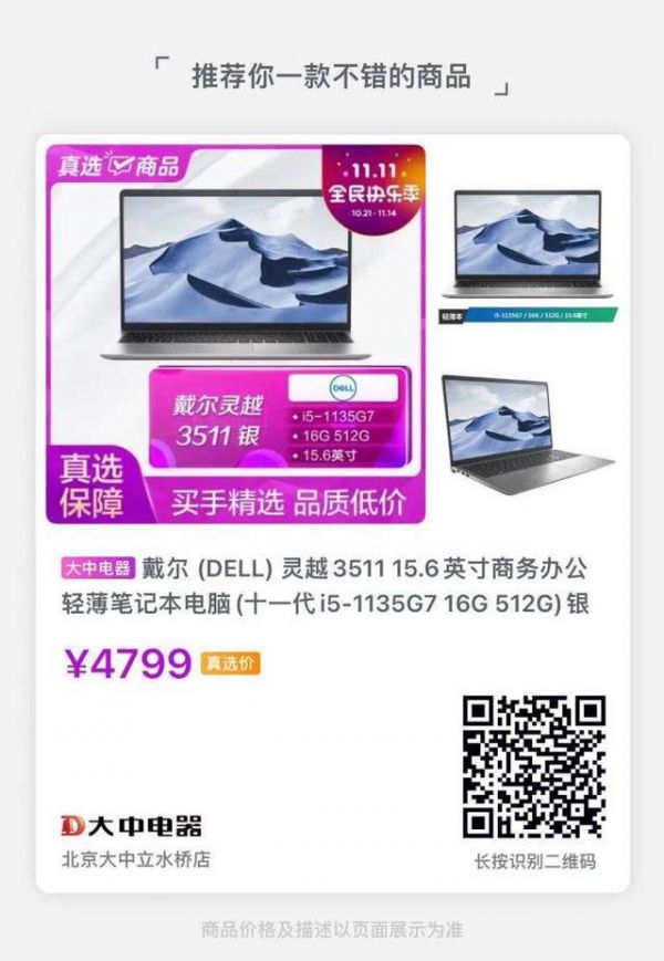 国美电器为大家真选了一款戴尔灵越3511笔记本电脑,它搭载了英特尔11代处理器,性能足够强劲,实力再上一层楼。对于追剧党来说,这款电脑堪称追剧“神器”,它拥有15.6英寸轻盈精神,采用了微边框设计,屏占比高达84.57%,追剧更痛快。让人惊喜的是,这款电脑即便在强光及复杂光下,屏幕画质依然质量在线,而且通过了护眼认证,不会给你的双眼带来负担。