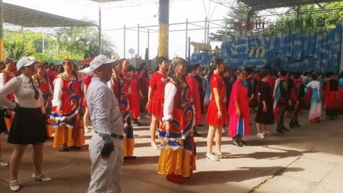 舞台下,来自各乡镇的参赛队伍身着各式服装,随着音乐翩翩起舞,形成一道靓丽的风景线。