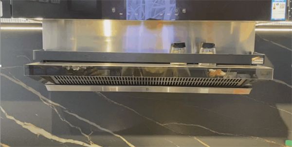 炉灶上方是升降式吸油烟机,900长机身在设计上与橱柜形成了完美融合,LED冷光灯照明环保节能,塑封铜线电机从源头上进行降噪,带来安静下厨体验。功能上,六位触摸开关,快慢双速+爆炒功能足以满足大部分家庭的下厨需求;清洁方面,智能热干洗化油功能,可自动清洗油烟机内部油渍,使用体验大大提升。烟机出风口上方还设置了调味品摆放区,方便下厨时拿取调料,避免手忙脚乱。