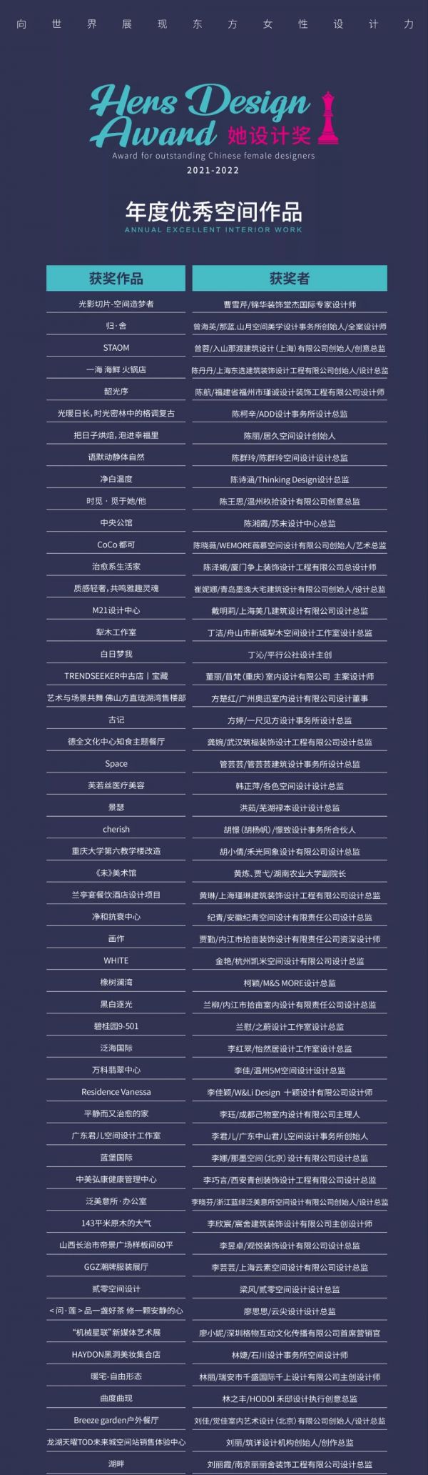 设计快讯|2021HDA她设计奖获奖名单公布
