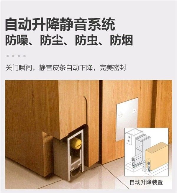 王力静音木门独创双台阶设计,增大了门框和门扇之间的接触面积,利用两个台阶之间的缓冲空间减弱声音的振动,有效隔离声音的传播,达到隔音效果。双台阶四面密封静音门采用的下挡自动升降静音系统,关门自动下降静音系统,自动填充门扇底部和地面的空间,使得地面和门扇之后的缝隙完美闭合,减弱底部的声音传输,达到防尘、防虫、防烟、防水的效果,最终达到静音的目的。