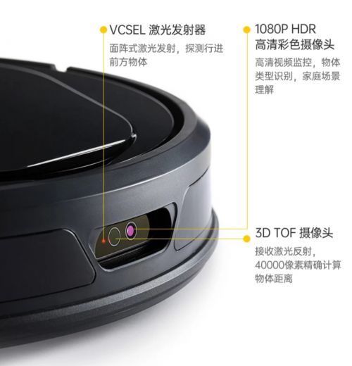 以近期的火爆产品Lucy Pet扫地机来说,它区别于采用LDS激光测距传感器、感知的高度与广度有限且为人诟病的传统产品,Lucy Pet最大的优势在于“3D ToF深度摄像头+1080P高清摄像头”组成的双摄系统,令其拥有垂直方向的视角,可以实现3D立体监测环境,人脸级别智能扫描,感知范围提升100倍。