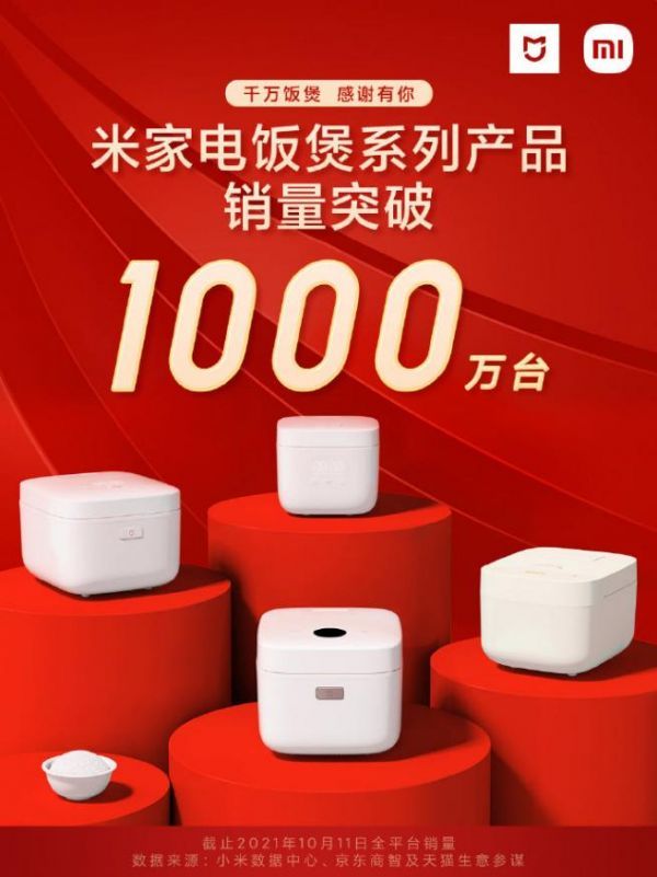 今年双十一,米家电饭煲C1勇夺天猫电饭煲品类销量冠军,京东电饭煲品类销额冠军。11·11前半小时,米家电饭煲全品类、全渠道销额突破1000万元,米家电饭煲C1 3L全渠道销量突破20000台。
