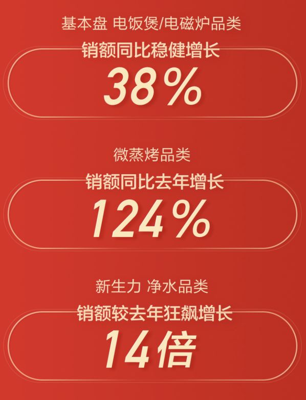 2020年双十一,米家电饭煲、米家电磁炉销量挺进行业同品类产品销量TOP3,超过了老牌大厂九阳,撬动了“美苏九”这个厨电行业持续30年的铁三角格局;