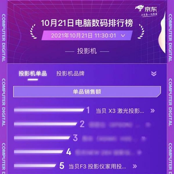 参考了一下10月21日的京东官方排行榜,看到当贝的多款产品都位列前五的位置,当时就有些犹豫究竟是选择当贝投影F3还是当贝激光X3。并且由于早前家里的智能电视上一直都有安装当贝市场这款APP,所以对于当贝的认可度还是蛮高的。值得一提,他们家的应用市场在国内拥有超过两亿的用户。