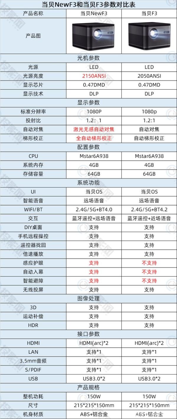 透过上面的表格可以看到,这款升级款的当贝NEW F3真的是配置太强了,而且对比老款升级的幅度也很大,像是感应护眼、自动入幕、智能避障这些功能都是太棒了!