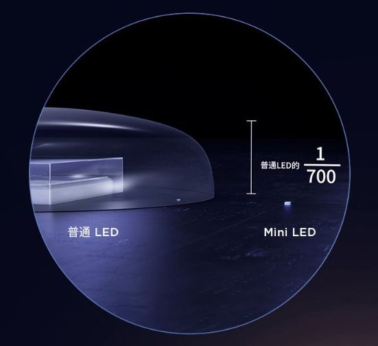 作为下一代显示技术,Mini LED聚合了LCD和OLED的优势。传统LCD的背光层通常由几十到数百颗尺寸大于200μm的LED灯珠组成,而Mini LED的晶粒尺寸约在50-200μm之间,同样的区域内,可以密集分布几百到几千个LED灯珠芯片,大幅度改善背光效果,实现轻薄化和极高的对比度。