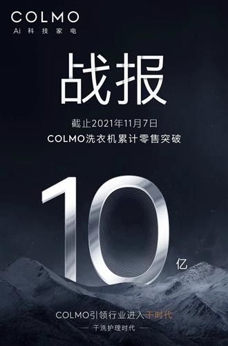 COLMO洗衣机零售破10亿,“干时代”推动新一轮高端洗护消费浪潮