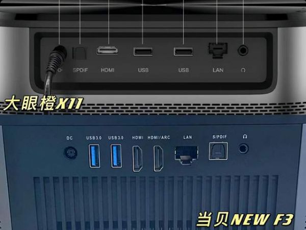 刚看到这两款投影仪的时候,从外观上小编就有了不同的感觉,当贝NEW F3的外形更加的精致。大眼橙X11的外观感觉笨重,虽然外观有玻璃面板的加持,无法衬托投影仪的科技感。从两者的后部设计来说,当贝NEW F3的接口更丰富,相比大眼橙X11来说可以外接更多设备。当贝NEW F3双USB3.0和双HDMI接口让小编尤为吃惊,目前只有当贝NEW F3做到了双USB3.0的接口。