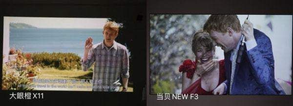 在下图的对比上,我们能发现大眼橙X11在画面部分的细节上容易曝光,画面细节刻画的也不够细腻,明暗过渡的能力也较弱,没有当贝NEW F3来的柔和。