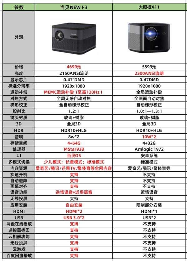 大眼橙X11有哪些优缺点?和当贝NEW F3相比,谁更优?