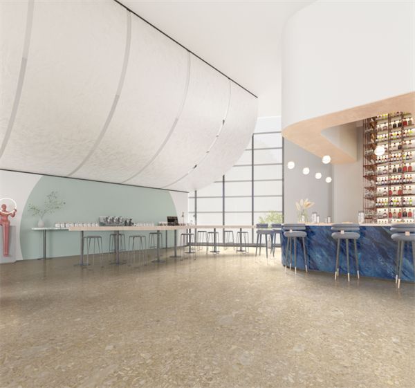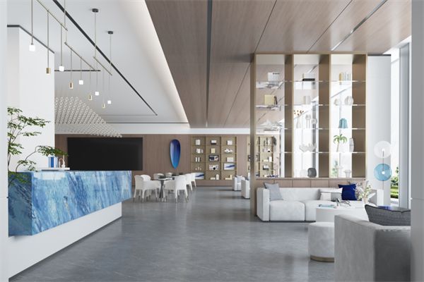 应用在台柜面,丰富视觉层次感,给空间带来一抹别样的鲜艳色彩;流状纹理纵向伸展,让空间自然衔接,打造高品质的公共空间。