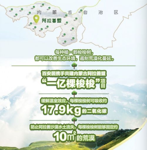 今年四月,百安居全力支持SEE基金会“一亿棵梭梭”项目,在阿拉善关键生态区种下梭梭,成立百安居环保公益林,为改善生态环境出一份力。