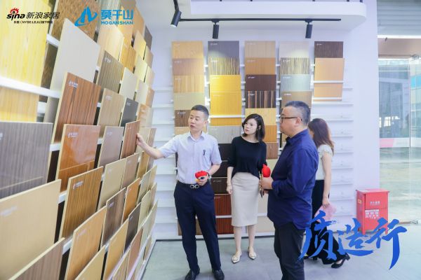 专注于品质型材的生产,专业的销售服务,一直是莫干山板材(全称:浙江云峰莫干山营销有限公司,为浙江升华云峰新材股份有限公司旗下全资子公司)不可替代的标签。在向走访团介绍产品时,不难发现作为莫干山的王牌主业,莫干山板材在产品上不断创新优化,由原先单一的生产经营装饰贴面板发展到全面生产经营全线绿色板材产品,先后推出了清醛除菌生态板,负离子金刚面生态板,阻燃型生态板,豆茵板等系列特色产品,深受消费者青睐。