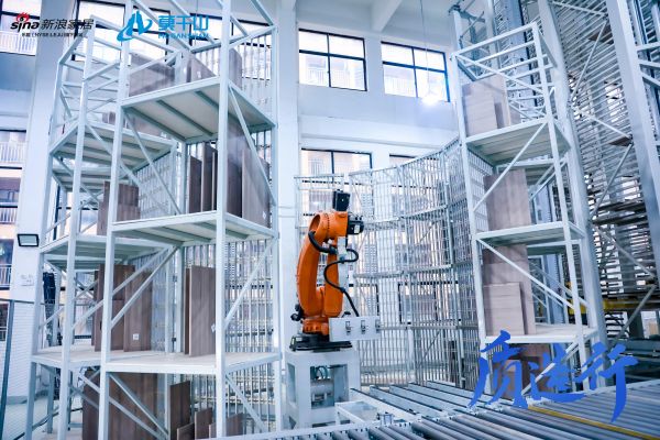 因此在走进5G生产车间时,给人非常直观的印象就是“人少”,这是型材企业难得一见的“风景”,高端的机械臂、监测各个机器运作生产的液晶屏、整齐流畅的压膜封边工艺、每块板材上的二维码……随处都展现出工业4.0注入的意义,这也充分体现出莫干山在提升制造生产力上的战略眼光。