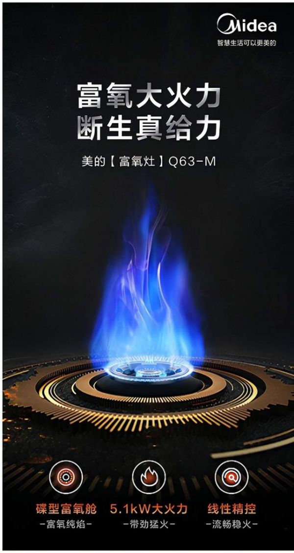 作为厨电行业的先行者,美的意识到一个企业要想真正成功,必须要顺应中国厨房需求、中国家庭真正痛点。在精准洞悉到消费者对灶具火力技术和烹饪效率的需求之后,美的重磅推出一款灶具新品——富氧灶Q63-M,富氧大火力,断生真给力。