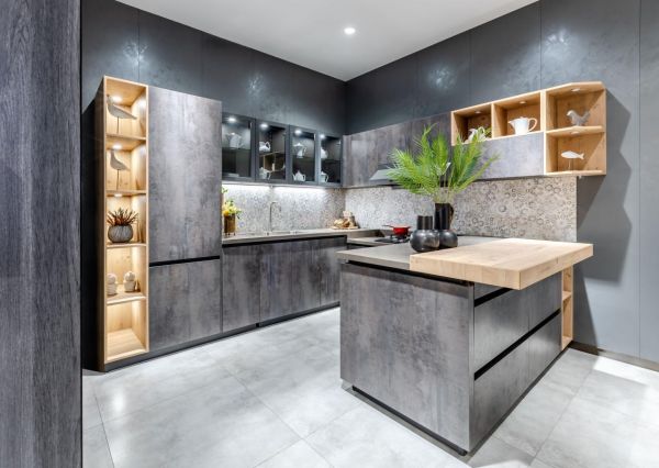 这家金牌橱柜在居然之家重庆金源店也是有10多年历史的“老店”了,但老店风格常新,金牌的新款都是第一时间在这个店上样。比如金牌橱柜红出圈的工业风的“阿玛尼7S”。