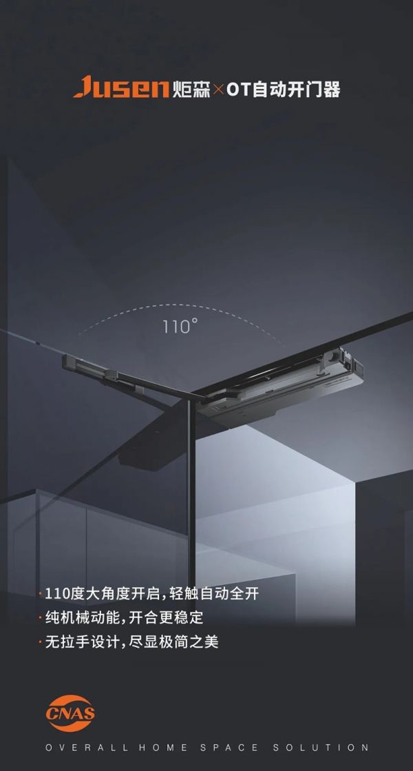 炬森One Touch自动开门器(简称OT自动开门器)为炬森原创设计,拥有发明专利。无把手设计,搭载舒适的开合系统,两步即可完成柜门的开合,实现真正的“一触全开,一推即关”的纯机械产品,能应用所有场景,包括厨房、卧室、客厅、浴室等,整体风格简约,更符合当下简约家居主流风格。一直以来,创新是炬森传承的基因,面对家居五金“年轻化”的趋势,炬森在产品设计方面进行革新,往后新品会以符合客户和用户的需求,从一些场景化、生活便捷性的角度出发,适应主流消费群体,从而满足他们对于个性化产品的需求。