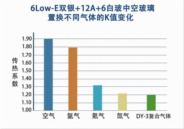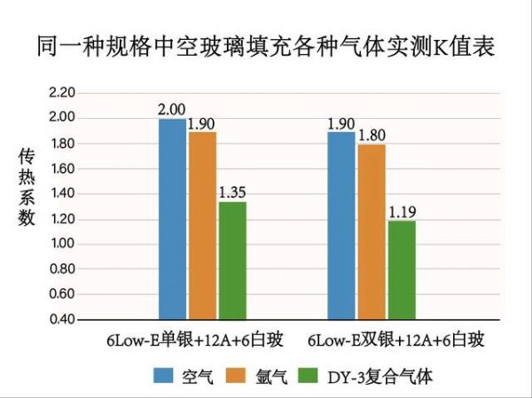 中空玻璃填充气体分别为空气、氩气、氪气、氙气以及DY-3功能复合气体。