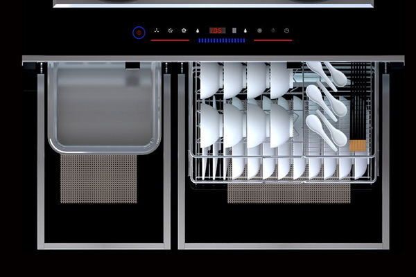 以金帝双腔蒸烤消集成灶为例——同样是左右双腔体结构,左边蒸烤一体小箱30L,烤鸡蒸鱼刚刚好。同样是在蒸烤功能完备的情况下,右边消毒储物大箱50L,消毒+烘干功能,安全健康。消毒柜兼具存储功能更省空间,8碗8盘无忧解决小厨房碗盘无处收纳问题,让厨房井井有条,解决长久以来的中式厨房痛点,为消费者带来更加具有价值的产品体验感。