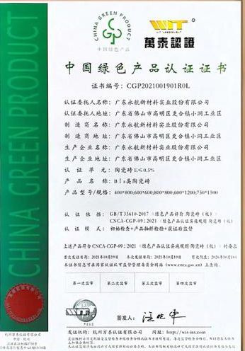近日,朗途陶瓷(广东永航新材料实业股份有限公司旗下品牌)斩获由国家市场监督管理总局全国认证认可信息公共服务平台颁发的“中国绿色产品认证”