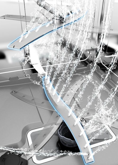 NEXTWASH 10套洗碗机做到真正的360度无死角喷淋洗涤,独特螺旋式上下喷臂相结合,22个喷水孔全方位持续高压高温冲刷,餐具边边角角的油污也能洁净到位。