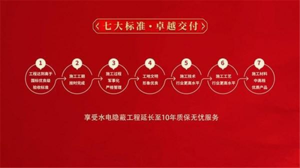 同时,金煌7大卓越交付标准也郑重承诺:质量达到高于国际的优良级验收标准、施工技术水平及工艺水平行业领先、施工材料全部采用优质中高档产品。