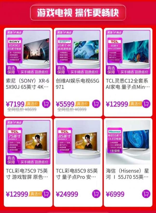 不仅仅是索尼电视,这款创维AI 65英寸超高清电视也是游戏电视的上佳之选,超高品质的音响、SKY VISION超话质引擎,其音画质堪称同级之巅。总之,游戏体验超好,价格也诚意,仅需5599!此外,在“真快乐”还可以选择TCL彩电游戏智屏、海信超薄全面屏电视机等热销款。
