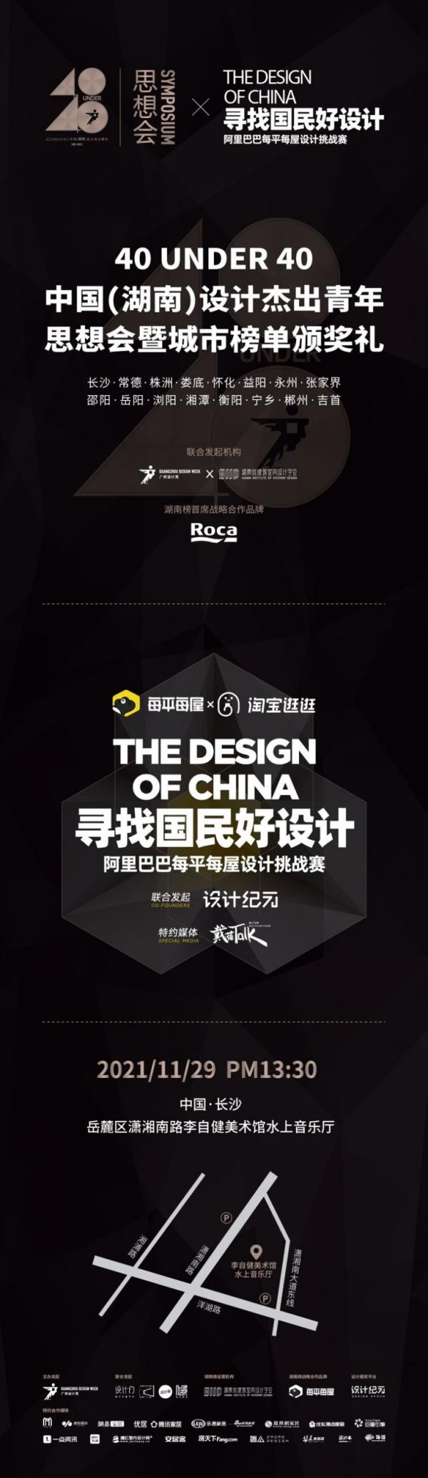 2021年11月29日,由广州设计周&HIID湖南省建筑室内设计学会联合出品,阿里巴巴每平每屋主办&设计纪元赞助支持的40 UNDER 40 中国(湖南)设计杰出青年思想论坛,将于长沙岳麓区潇湘南路李自健美术馆水上音乐厅重磅开启,共同探索设计思想新方向。