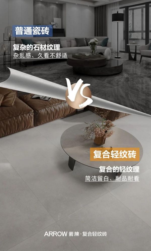 市面上一些大纹理、名贵石材纹理的瓷砖,虽惊艳但不经看,由于纹理之间的明度落差太大,深浅不一,对比度强,纹理过多过于明显就会造成视觉上的混乱,给空间徒增凌乱感。