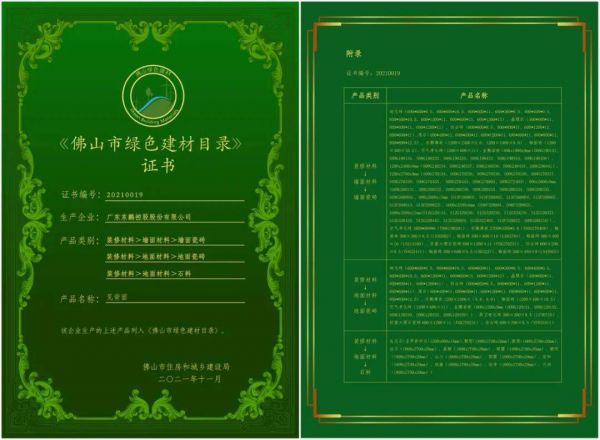 近日,由广东省住房和城乡建设厅、佛山市住房和城乡建设局指导,广东省建设工程绿色与装配式发展协会、佛山市装配式建筑协会、广东鸿威共同主办的2021中国绿色建材与装配式建筑展在佛山·华艺(国际)装饰博览城举办。东鹏绿色产品荣获《佛山市绿色建材目录证书》。